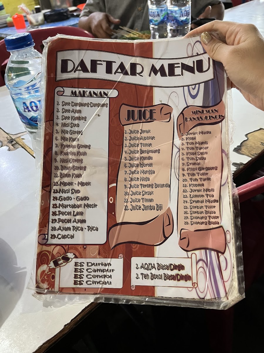 Sate Danguang Danguang Simpang Kinol Pondok offers a delightful menu that captures the essence of Padang's rich culinary tradition. The restaurant excels in its signature Sate Padang, a skewered meat dish served with a flavorful, spicy sauce that’s perfect for those who enjoy bold, savory flavors. Another standout is Soto Padang, a hearty soup with tender beef, vermicelli, and a unique broth that offers a comforting yet vibrant taste. The menu also features various traditional dishes that celebrate the diverse flavors of the region, making it a must-visit for anyone looking to experience authentic Padang cuisine. With its focus on quality ingredients and robust spices, Sate Danguang Danguang Simpang Kinol Pondok ensures every dish is a memorable experience.